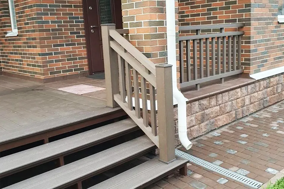 Широкие ступени, выполненные из полнотелого профиля, обеспечивают безопасный и комфортный переход между уровнями, выдерживая интенсивные нагрузки без деформации. Интегрированные ограждения из того же материала дополняют ансамбль, обеспечивая надежную защиту и приватность. Поверхность ДПК обладает выраженной противоскользящей текстурой, не выгорает на солнце и не требует ежегодной покраски или обработки антисептиками.